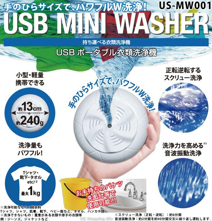 USB携帯洗濯機 USBポータブル衣類洗浄機 ハンディサイズ US-MW001 音波洗浄器 音波洗濯機 小型 持ち運び 持ち歩き コンパクト 旅行 トラベル 便利グッズ USB電源 USB MINI WASHER