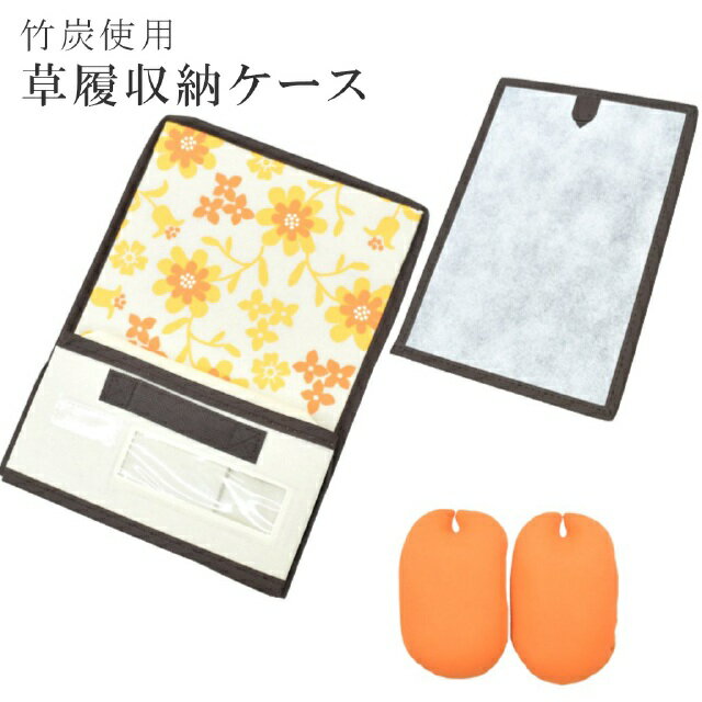 草履収納ケース 竹炭 草履 収納 ケース ぞうり収納ボックス 御はき物箱 オレンジ色 【新品】【着物ひととき】 sin6042-wkb04