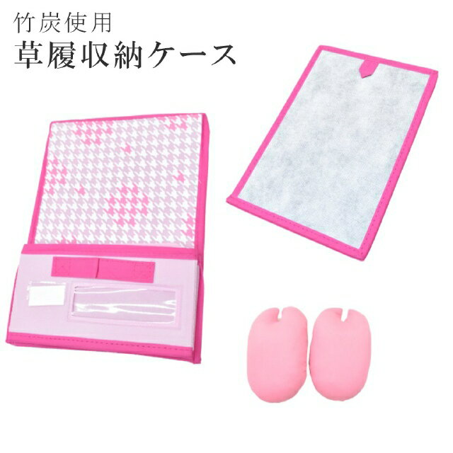 草履収納ケース 竹炭 草履 収納 ケース ぞうり収納ボックス 御はき物箱 ピンク色 【KIMONO梅千代】 sin6041-wkb04