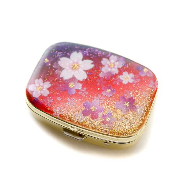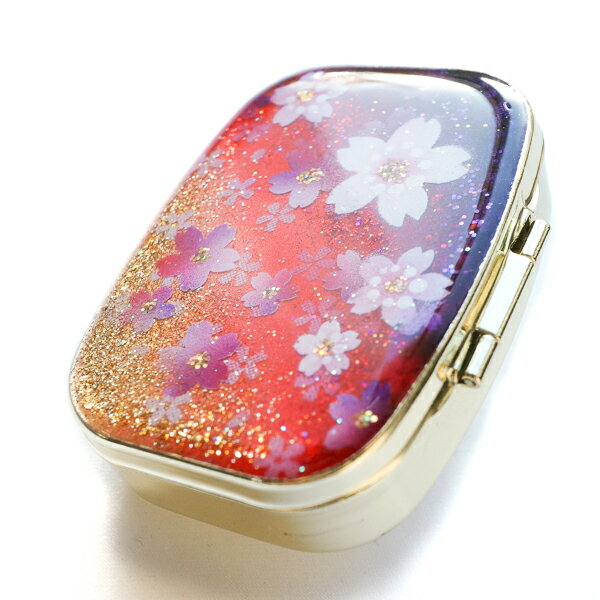 マコズアトリエ ハンドメイド 手描き 名入れ無料 スクエア ジュエリーボックス ピルケース 機能付き コンパクトミラー 桜 金箔入 女性 レディース レッド系 mp1194
